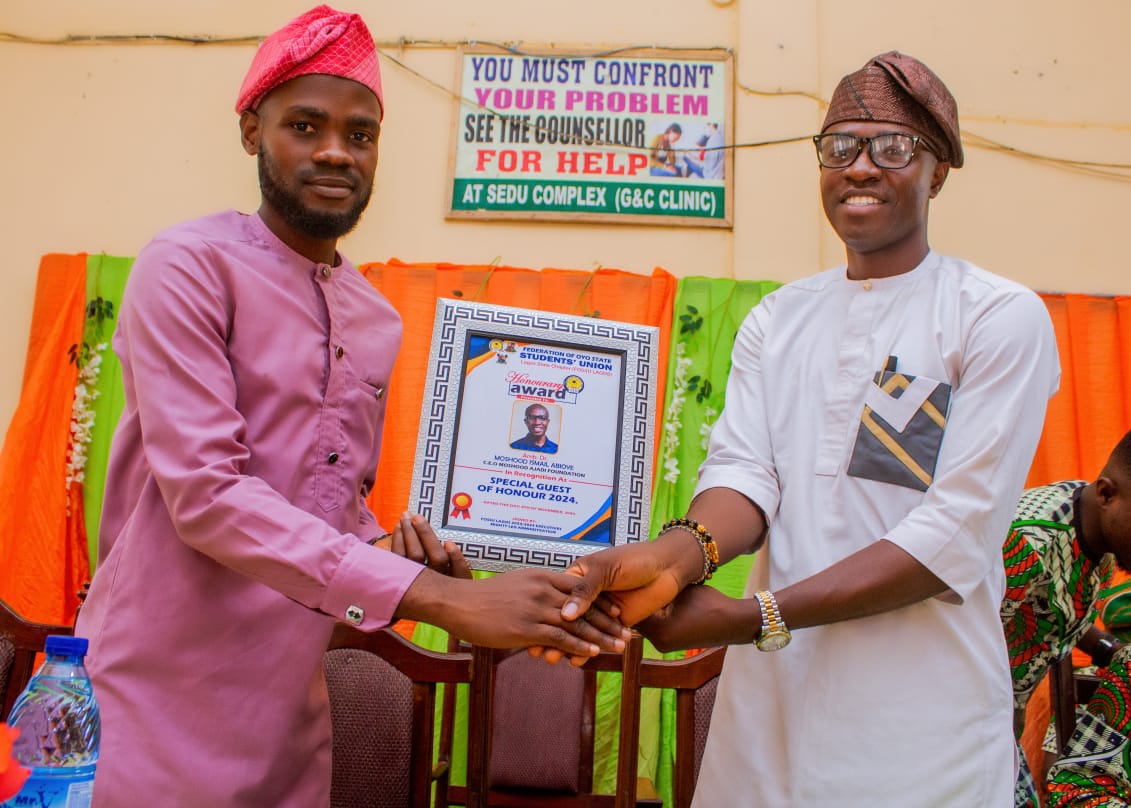 In a news report made available to G-Reports on Friday in lagos. Congratulations pour as founder of Moshood Ajadi foundation Amb. Dr. Moshood Ismail Abioye bagged an honorary award at lagos state college of education ijanikin at tha Amala day of federation of oyo state students union (Fossu) Lagos chapter in the midst of royal fathers, parents and students.