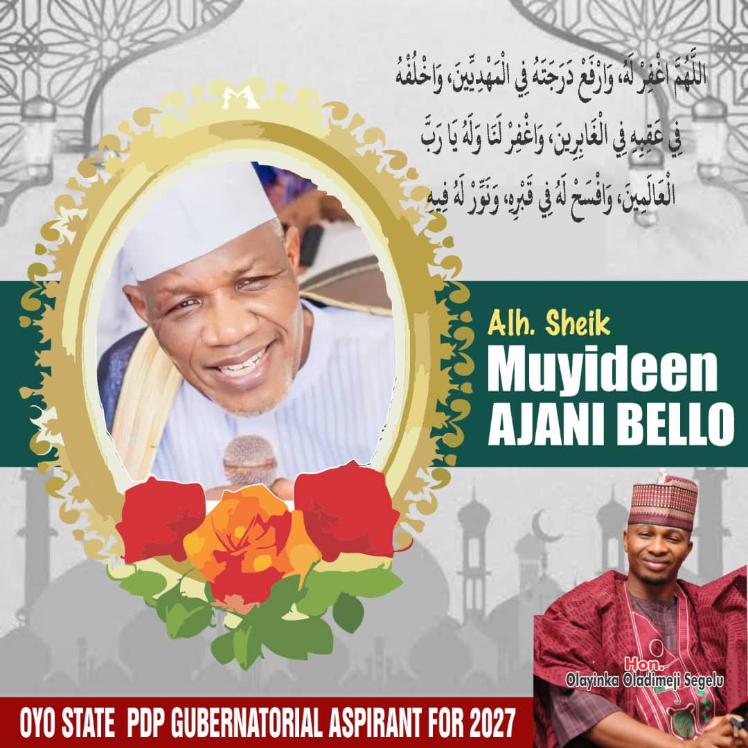 Hon Segelu’s statement reads: “I express my heartfelt condolences to the immediate family of Sheikh Muyideen Ajani Bello on the shocking and painful death of the great and prominent Ibadan-born Islamic scholar.