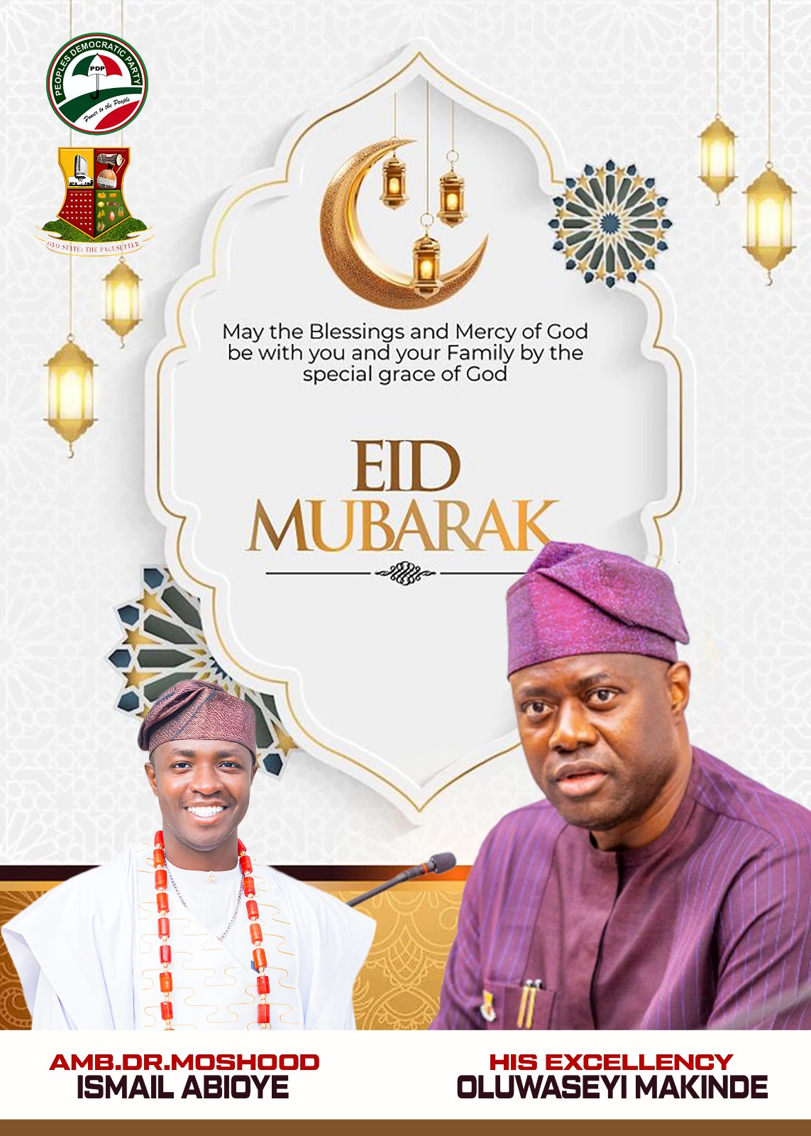 Ambassador Dr. Moshood Ismail Abioye has congratulated the Executive Governor of Oyo State, Seyi Makinde, and the entire Muslim Ummah on the celebration of this year’s Eid.
